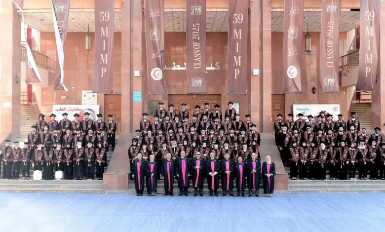 وعقب التقاط الصور التذكارية، قدّم الدكتور شريف خاطر التهنئة للخريجين، مؤكدًا أن لحظة التخرج تمثل محطة فارقة في مسارهم العلمي والمهني، وانتقالًا من مرحلة الدراسة إلى مرحلة الممارسة العملية، مشددًا على أن مهنة الطب تتطلب التعلم المستمر ومتابعة أحدث المستجدات العلمية لمواكبة التطورات المتسارعة في مجالات العلوم الصحية والتقنيات الطبية.