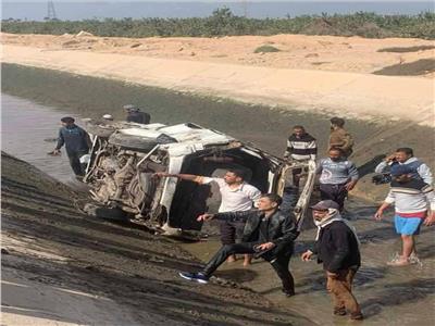 إصابة 9 أشخاص إثر إصطدام ميكروباص بملاكى وإنقلابها بترعة ناصر بالبحيرة
