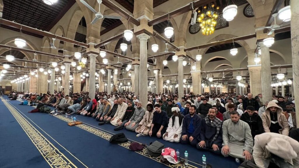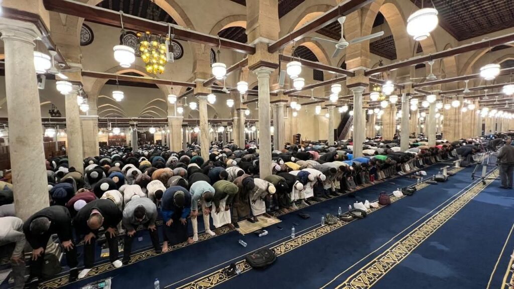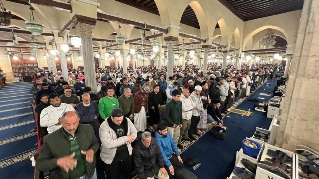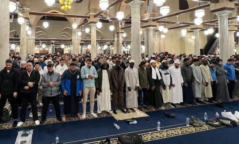 آلاف المصلين يؤدون صلاتي العشاء والتراويح بالجامع الأزهر الشريف