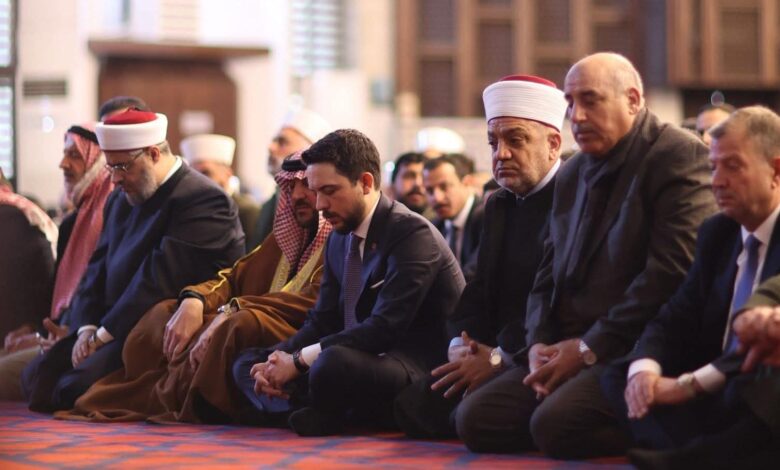 وشهدت الصلاة حضور مفتي الأردن، أحمد الحسنات ، ووزير الأوقاف الأردني، الدكتور محمد الخلايلة، والسفير المصري في الاردن السفير خالد الأبيض، إلى جانب نخبة من الوزراء والمسئوليين الاردنيين و العلماء والدعاة من الأردن ومصر.