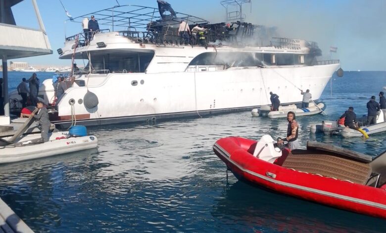 اندلع حريق بمركب سياحي كان يرسو بالقرب من شاطئ فندق المشربية بالممشى السياحي ما استدعى تدخل من قوات الحماية المدنية.