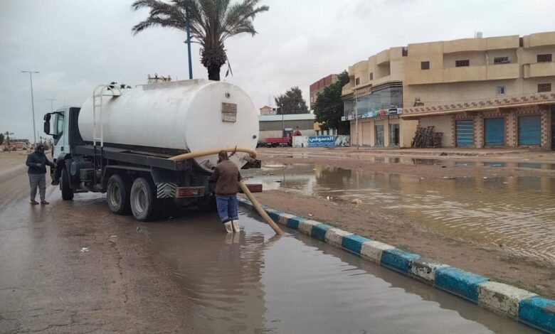طوارئ مطروح تواصل جهودها لرفع تجمعات مياه الأمطار بالشوارع والطريق الدولي