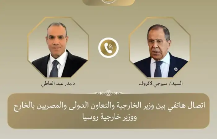 أجرى بدر عبد العاطي، وزير الخارجية والتعاون الدولي والمصريين بالخارج، اتصالًا هاتفيًا مع نظيره الروسي سيرجي لافروف، في إطار التنسيق والتشاور المستمر بين البلدين بشأن التطورات المتسارعة في المنطقة، والجهود المبذولة لاحتواء التوترات ودعم مسارات التهدئة.