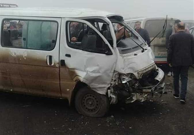 أصيب 10 أشخاص في حادث تصادم سيارة ملاكي وميكروباص على الطريق الصحراوي الغربي بالقرب من مدخل نقادة بقنا.