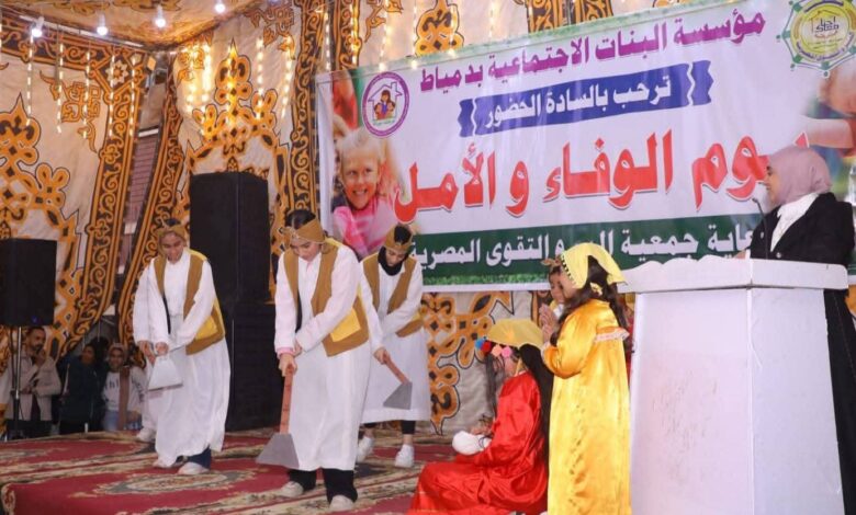 استقبلت مؤسسة البنات الاجتماعية بمحافظة دمياط احتفالية فنية، بمشاركة مواهب فرع ثقافة دمياط، وذلك ضمن فعاليات احتفالات المحافظة والهيئة العامة لقصور الثقافة برئاسة اللواء خالد اللبان، بمناسبة يوم اليتيم، في إطار برامج وزارة الثقافة.