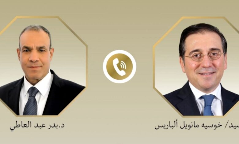 تلقي د. بدر عبد العاطي وزير الخارجية والتعاون الدولي والمصريين بالخارج اتصالاً هاتفياً من السيد “خوسيه مانويل ألباريس” وزير خارجية إسبانيا يوم الأحد ٥ إبريل في إطار التشاور الدورى بين البلدين لبحث سبل تعزيز العلاقات الثنائية وتبادل الرؤى إزاء المستجدات الإقليمية.