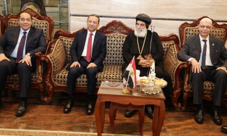 رئيس جامعة المنوفية والمحافظ يقدمان التهنئة لنيافة الأنبا بنيامين بمناسبة عيد القيامة المجيد