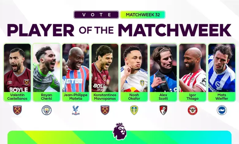 قائمة المرشحين لـ جائزة أفضل لاعب خلال الجولة الـ 32 في الدوري الإنجليزي