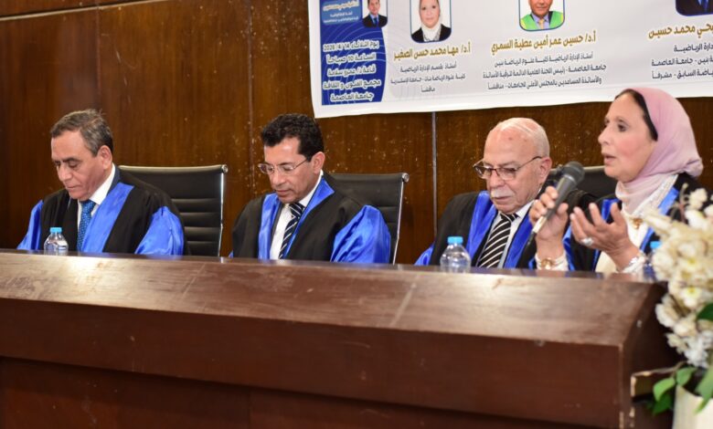 وجاءت المناقشة تحت رعاية الدكتور السيد قنديل رئيس الجامعة، الدكتور أشرف رضا المدير التنفيذي لمجمع الفنون والثقافة، في إطار حرص الجامعة على دعم الدراسات العلمية ذات البعد التطبيقي في مجالات الرياضة والإدارة والتسويق.