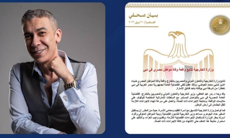 تتابع وزارة الخارجية والتعاون الدولى والمصريين بالخارج واقعة وفاة المواطن المصري ضياء الدين شلبي محمد العوضي، وذلك عقب تلقي القنصلية العامة لجمهورية مصر العربية في دبي إخطارًا من شرطة دبي بوفاته بأحد فنادق الإمارة.