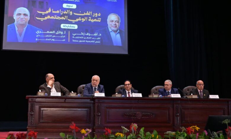وفي مستهل كلمته، رحب الدكتور محمد سامي عبدالصادق، بالدكتور أشرف زكي والاستاذ وائل السمري فى رحاب جامعة القاهرة العريقة، مؤكدًا أهمية موضوع الندوة لكونها تتناول دور الفن والدراما اللذين يؤثران تأثيرًا كبيرًا علي وعي ابناء الوطن، ومشيرًا إلى أن النشاط المسرحي بجامعة القاهرة جزء أصيل من رسالتها التعليمية والتنويرية، ولا يمكن أن يتوقف، وأن مهرجان العروض المسرحية ينطلق بكامل طاقته بمختلف الكليات اعتبارًا من 3 مايو المقبل. وأضاف أن الفن الهادف قوة حقيقية في تشكيل الوعي وبناء القيم، وجامعة القاهرة كانت ولا تزال مصنعًا لنجوم الفن والإبداع