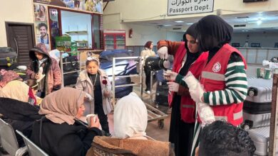 الهلال الأحمر المصري يواصل خدماته الإنسانية في استقبال وتوديع الأشقاء الفلسطينيين