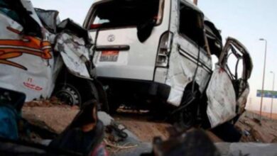 مصرع 14 شخصا وإصابة 2 فى حادث تصادم سيارة نقل وميكروباص على صحراوي المنيا